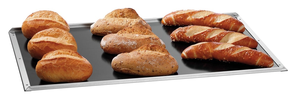 ⟶ Avec le set de tapis de cuisson 🔗 (dotation : 1 tapis de cuisson + une plaque perforée 600×400, perforation Ø 5 mm.) extrêmement durable et résistant à la température, vous réalisez jusqu’à 2000 cuissons, des petits pains aux pâtisseries salées.(…)