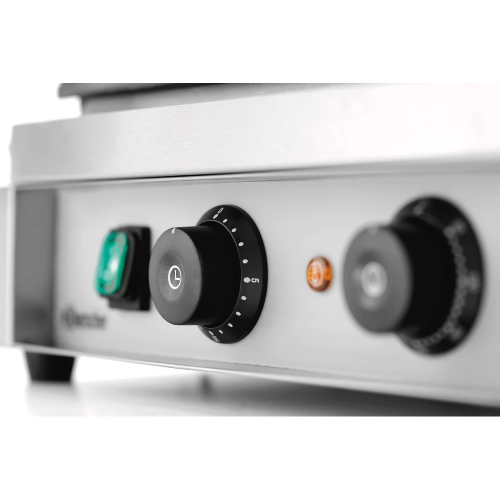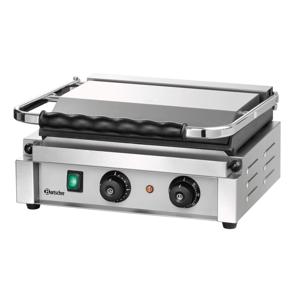 ⟶ La série de grils de contact optimisés Panini-T dispose toujours de la même structure solide et fiable, mais est également équipée d’une minuterie et signal sonore intégré.