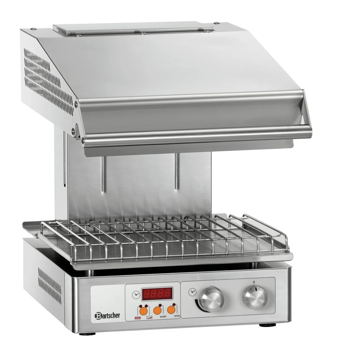 Appareil de grillage compact pour les restaurants disposant d’un espace limité et nécessitant deux zones réglables séparément pour le grillage et le maintien au chaud.
