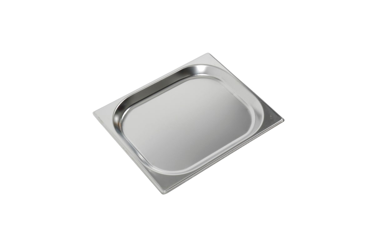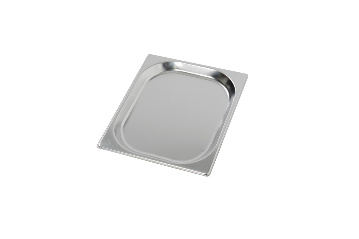 Plaque de cuisson plate en acier inoxydable 1/2 GN, profondeur 20 mm, 1,6 litre, finition satinée avec bord renforcé – norme EN 631, série Top Line.